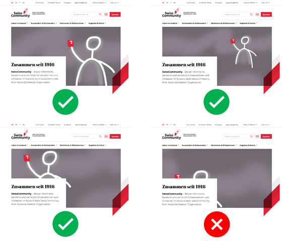 Das Foto auf unserer Startseite ist im Querformat und doppelt so breit wie hoch. Ein Viertel davon unten links ist bei der Desktop-Version nicht zu sehen. Berücksichtigen Sie dies bitte beim Schiessen des Fotos. Bilder, auf denen Sie oder Ihr Pass überdeckt werden, können wir leider nicht verwenden. Ansonsten müssen Sie nichts beachten. Es ist auch nicht nötig, dass Sie das Foto zuschneiden.