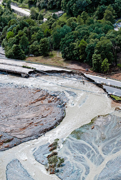 Starke Niederschläge in der Südschweiz richteten im Sommer 2024 grosse Zerstörungen an – im Bild ein weggeschwemmtes Teilstück der A13 bei Lostallo im Misox.