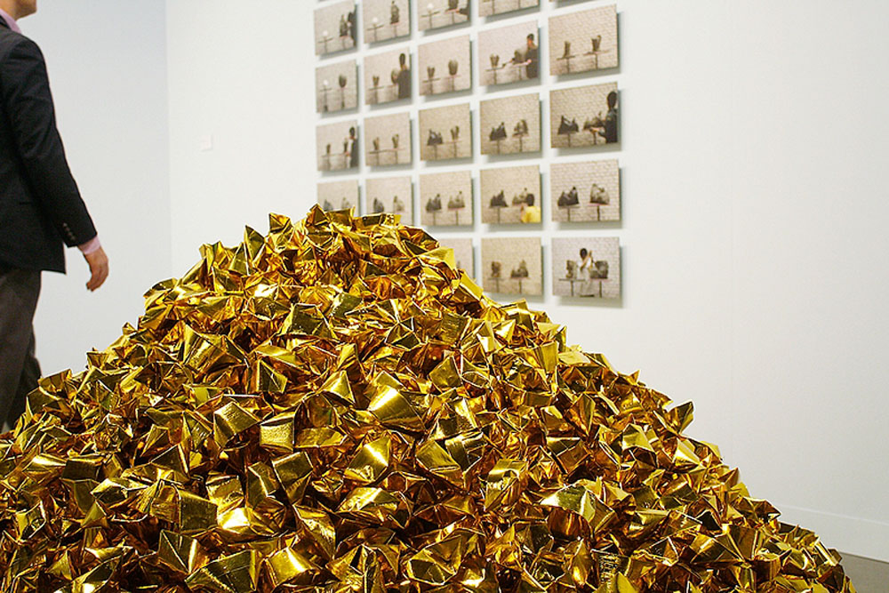 Draussen brannte die Dezembersonne vom Himmel, im Innern des Convention Centers in Miami Beach glitzerte an vielen Messeständen viel Gold. Das Material boomt in der zeitgenössischen Kunst gerade. Damit können Künstler das Bedürfnis nach Exklusivität und Glamour ausdrücken, sich über die Äusserlichkeiten des Marktes amüsieren und gelegentlich auch an eine Tradition erinnern: Die Galerie Meile aus Luzern zeigte einen Haufen Papierschiffchen aus Goldpapier des jungen chinesischen Künstlers Hu Qingyan. Die handgefalteten Formen galten in der Ming Dynastie als Währung, heute lässt man sie als Gruss an die Ahnen auf Flüssen treiben. Das Gold ist aber auch wie kaum etwas anderes dazu geeignet, den exklusiven Standard auszudrücken, den die Art Basel mit ihren drei Standorten Basel, Miami Beach und Hongkong im globalen Kunstmarkt verkörpert. Sie ist die Königin unter den Messen für die Kunst der Moderne bis in unsere Gegenwart.