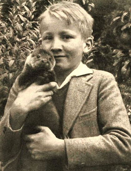 Der noch nicht voll ausgewachsene Fischotter Peterli in den Armen eines jungen Tierparkbesuchers – fotografiert von Heini Hediger. Foto Heini Hediger, 1938/1939