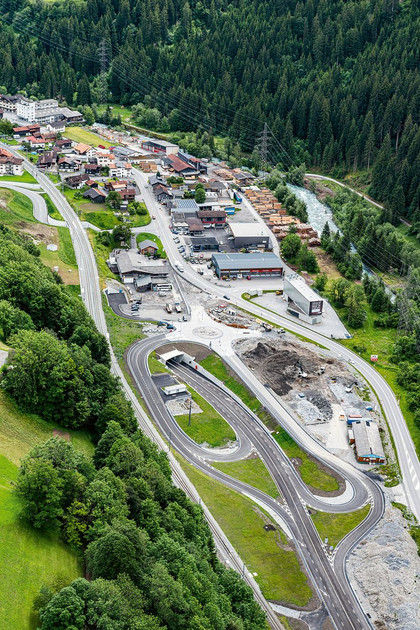 Luftbild während dem Bau der Umfahrung von Küblis. Es illustriert: Graubünden ist auch als Land der Umfahrungen bekannt. Foto ZVG