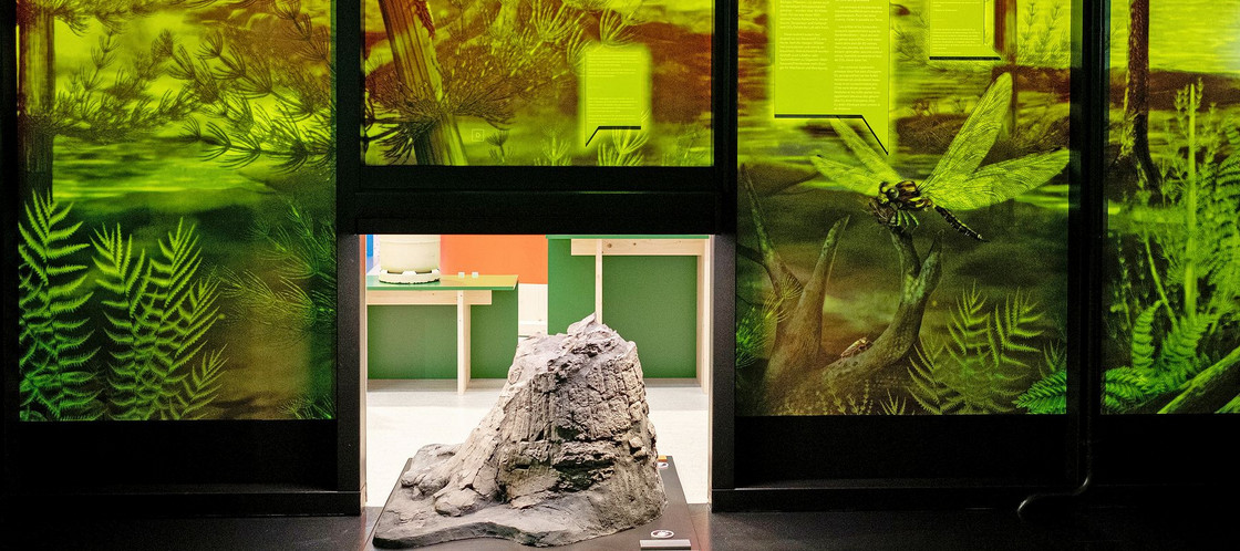Diese sumpfige Tropenwald-Inszenierung ist Teil der neuen Ausstellung «Mensch, Erde! – Das Klima im Wandel» im Naturhistorischen Museum Bern. Der tropische Sumpf befindet sich in einem Holzkubus, in dem die Welt dargestellt wird, wie sie vor 300 Millionen Jahren aussah. Lange, bevor der Mensch auftauchte.