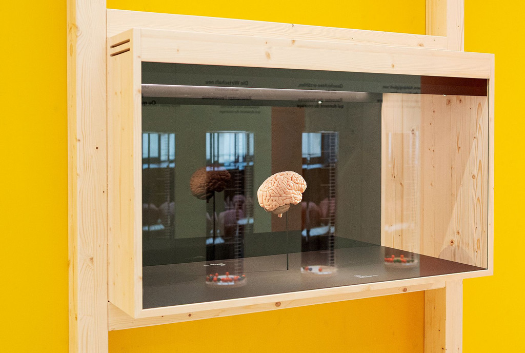 Auch wenn in «Mensch, Erde!» eine Botschaft mitschwingt («Man muss etwas tun!») und gleichzeitig die Befürchtung sich nicht verflüchtigt, es könnte zu wenig und zu spät sein: Die Ausstellung kommt praktisch ohne moralische Belehrungen aus. Bevor man sie durch die Eingangstür betritt, rast man – quasi als Amusebouche – mit einer einminütigen Videosequenz durch 4,5 Milliarden Jahre Erdgeschichte. Der Mensch tritt im allerletzten Augenblick auf. Mit diesem Bewusstsein stösst man dann drinnen irgendwo auf eine Vitrine, in der die Nachbildung eines menschlichen Hirns liegt. Ganz alleine. Es ist wohl das entscheidende Werkzeug auf dem Weg, den Treibhausgas-Ausstoss auf Netto Null zu begrenzen.