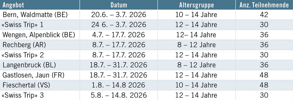 SJAS bietet 2026 neun Sommerferienlager und ein neues Info-Meeting an