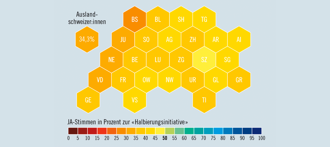 Die «Halbierungsinitiative» war eine von fünf Vorlagen, über die am dicht bepackten Abstimmungssonntag entschieden wurde. Bei allen Fragestellungen – öffentlicher Rundfunk, Steuersystem, Bargeld und Klimaschutz – folgten die Stimmberechtigten den Empfehlungen von Regierung und Parlament (siehe Grafiken). Mit mehr als 55 Prozent war die Stimmbeteiligung überdurchschnittlich hoch. Besonders mobilisierte die SRG-Initiative. Rechtsbürgerliche Kreise unter Führung der Schweizerischen Volkspartei (SVP) wollten die jährliche Medienabgabe von 335 Franken auf 200 Franken pro Haushalt senken und Unternehmen davon befreien.