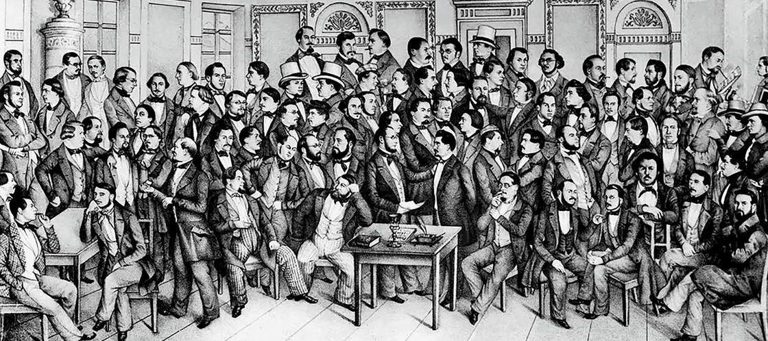 Nach dem Sieg der Progressiven gewannen die Konservativen in Freiburg in den 1850er-Jahren wieder die Oberhand. Die Regierung fürchtete den Einfluss der Société de Chant und versuchte, ihre Aktivitäten zu unterbinden. Erst 1871 konnte der Chor wieder ein kantonales Gesangsfest organisieren – und lud dazu die Berner Liedertafel ein. Der angesehene Chor aus der neuen Bundesstadt war eng mit der Politik verknüpft; unter seinen Passivmitgliedern fanden sich Bundesräte. Die Berner Sänger unterstützten ihre Freiburger Kollegen aus Solidarität – aber auch «aus patriotischer Pflicht», um die Einheit der noch jungen Eidgenossenschaft zu stärken.