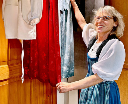 Aujourd’hui, l’époque est à nouveau troublée. Après la pandémie de coronavirus, pendant laquelle les associations de yodel, de costumes et de danse traditionnels ont perdu des membres, les tailleuses de costumes ont observé un regain d’intérêt chez les jeunes. On offre ce type de tenue pour les confirmations, et les enfants des familles d’hôteliers en portent. La clientèle est plutôt campagnarde. Monika Bögli a elle aussi de jeunes clientes, qui ont souvent hérité du costume de leur grand-mère et le font adapter à leur taille. Certaines clientes s’offrent ce vêtement précieux pour un anniversaire au chiffre rond.