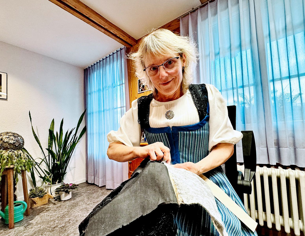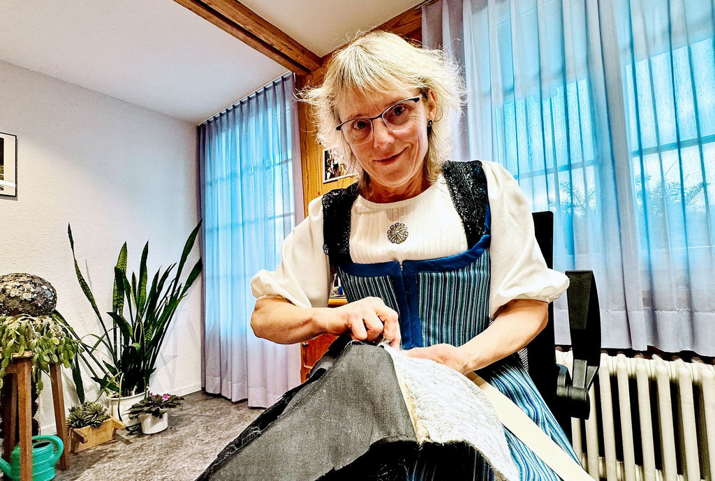 Avec des aiguilles, du fil et des dizaines d’heures de travail manuel, Monika Bögli fait vivre une tradition suisse à Neuenegg, dans le canton de Berne. Cette tailleuse de costumes habille ses clientes de «morceaux de patrie» faits sur mesure.