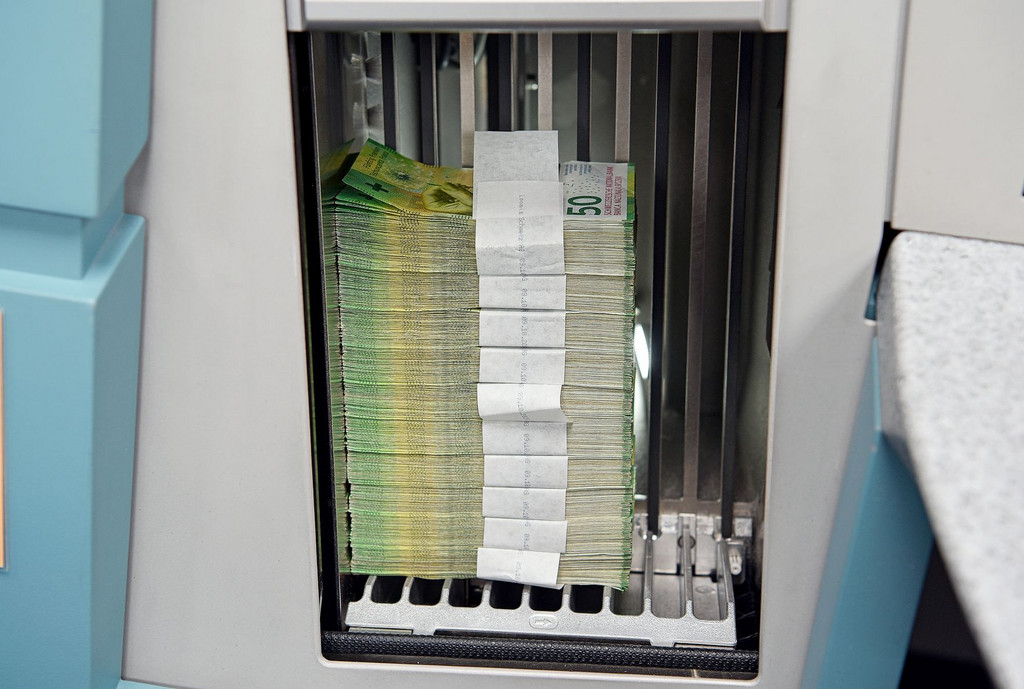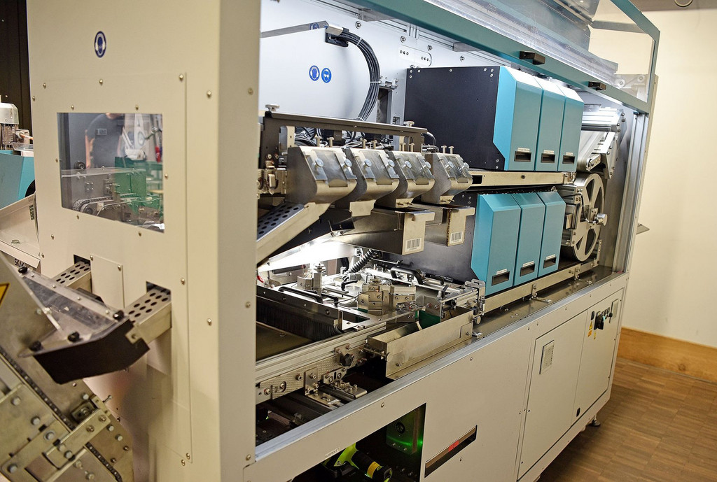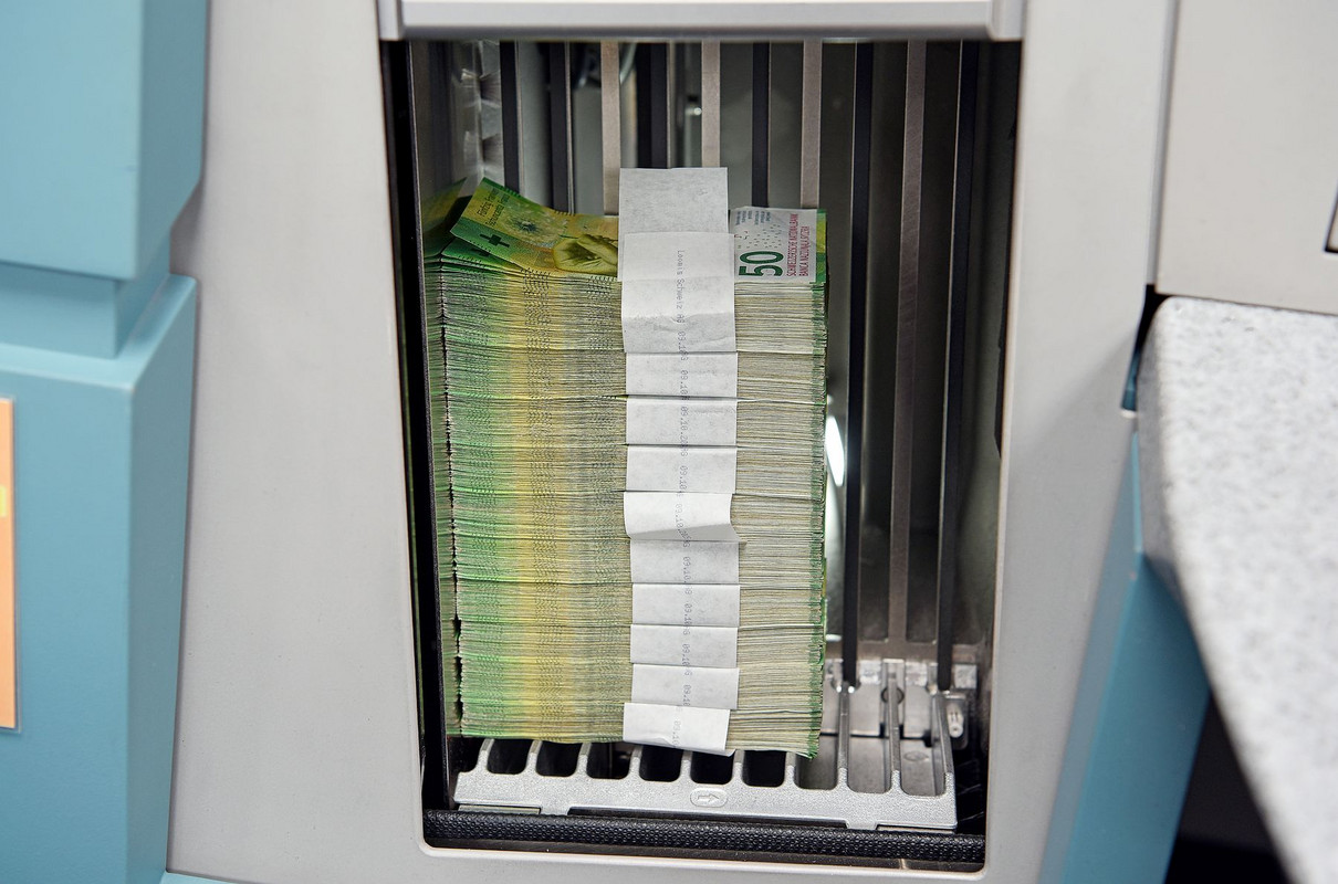 La «Revue Suisse» a été exceptionnellement autorisée à pénétrer derrière les murs bien protégés de l’organisme qui émet la monnaie en Suisse. Dans son sous-sol à Berne, la BNS réceptionne quotidiennement des caisses de pièces et de billets. Elles sont apportées par des sociétés de transport de fonds comme Loomis, qui approvisionne en argent liquide les banques, magasins et administrations et se charge en retour de la collecte. Avant que cet argent ne soit remis en circulation, il est trié, contrôlé et, si nécessaire, remplacé. L’an dernier, la BNS a mis en circulation près de 244 millions de billets de banque et 166 millions de pièces de monnaie, et a récupéré 238 millions de billets et 131 millions de pièces.