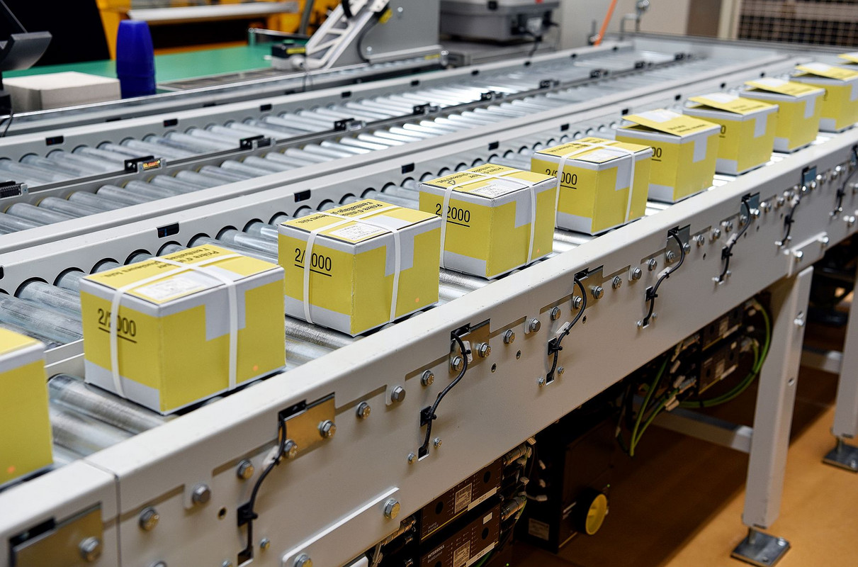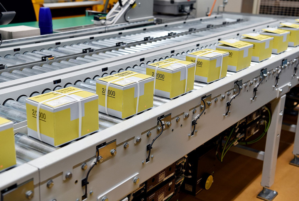 «La qualité est notre carte de visite», souligne Peter Eltschinger, du service du numéraire, qui accompagne la «Revue» dans sa visite. Les billets de banque sont conçus pour supporter bien des choses: ils peuvent être pliés et repliés, et mêmes lavés sans dommage. Les billets en bon état, qui sont remis en circulation, sont réemballés par une machine et transportés sur des tapis roulants. Avant que les liasses scellées dans du film plastique n’atterrissent dans une caisse de transport, une employée contrôle chaque paquet à la main. Il suffit qu’un seul billet soit légèrement froissé pour que tout le paquet retourne dans la machine et soit traité à nouveau.