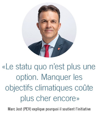 Pour protéger les intérêts des générations à venir, l’État doit agir résolument et investir, pense la conseillère nationale PS Gabriela Suter. «Seules des mesures prévoyantes nous permettront d’assurer un avenir à nos descendants, et une vie aussi bonne que la nôtre.» Marc Jost, du PEV, renchérit: la Suisse en fait trop peu pour atteindre la neutralité climatique et satisfaire à ses obligations internationales. «Le statu quo n’est plus une option.» Il admet qu’il importe d’éviter de nouveaux déficits publics, mais relève que manquer ses objectifs climatiques coûte plus cher encore. Si l’initiative est acceptée, le nouveau fonds devra être disponible en 2029 au plus tard.