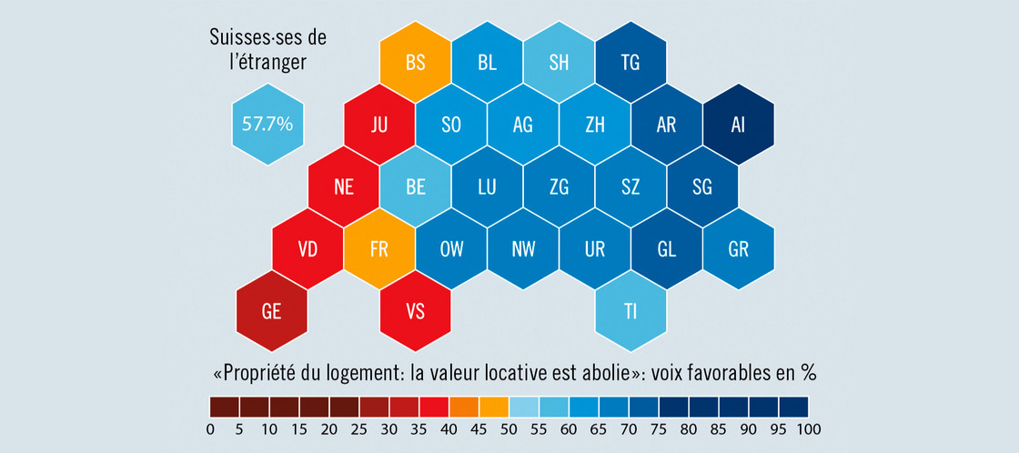 Le deuxième texte soumis à la votation le 28 septembre s’est imposé avec plus de facilité. 57,7 % des votants ont accepté d’abolir la valeur locative. La Suisse alémanique et le Tessin ont majoritairement approuvé cette réforme de l’imposition de la propriété du logement, tandis que la Suisse romande l’a refusée en bloc. Ce fossé était déjà apparu lors de la campagne de votation. Dans la partie francophone du pays – contrairement au reste de la Suisse –, même les parlementaires bourgeois avaient fait campagne contre l’abolition de la valeur locative, en affirmant que celle-ci réduirait les investissements dans les biens immobiliers et affaiblirait le secteur du bâtiment.